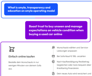 Senior Product Designer designing web and app interfaces for the B2B2C e-commerce product “smyle – Buy cars online”. Acting as an interim design lead and contributing to product strategy by conducting workshops to align business with user needs. Driving the growth of the design team by organizing monthly learning sessions. Smyle AutoScout24, Munich, Germany